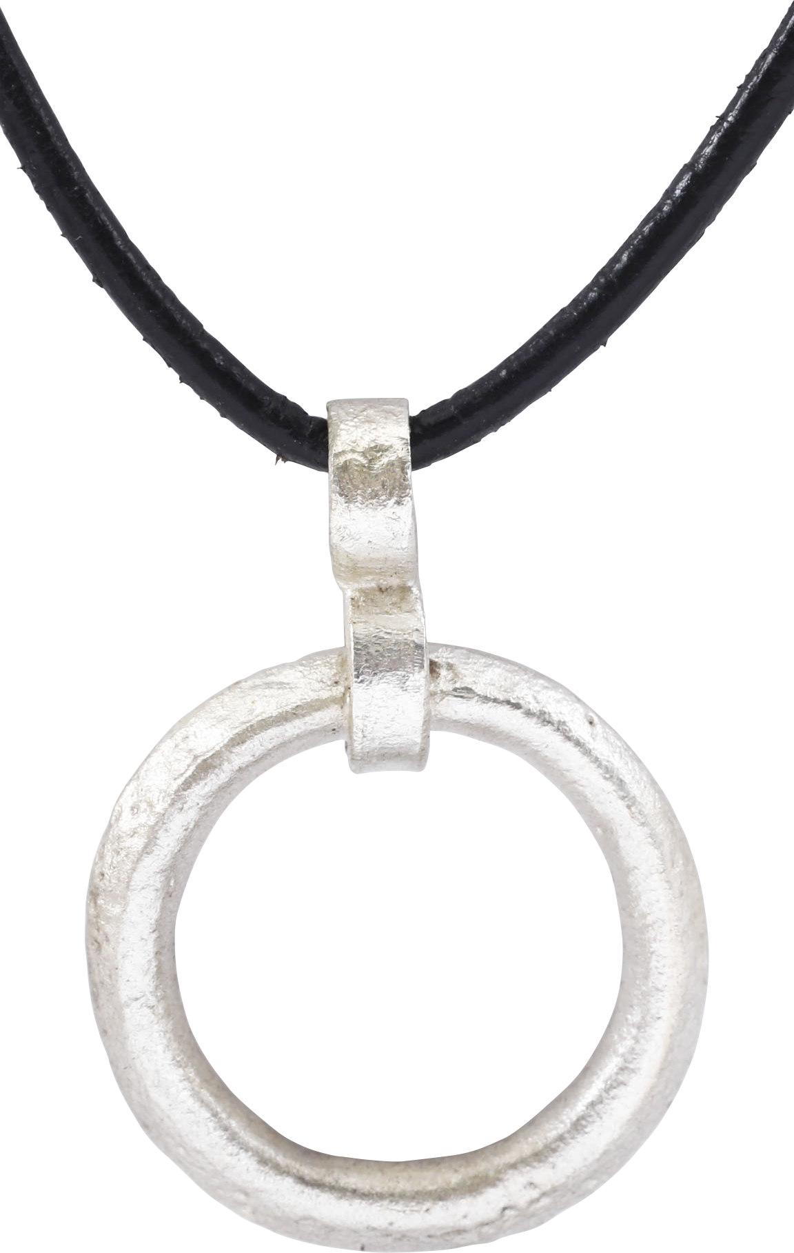Just over 7/8” (0.92”) diameter of elegant form. Surface degradation from burial. Professionally refurbished with a silver surface. On an 18” modern Sterling silver neck cord for everyday wear. Gift boxed with a certificate of authenticity.