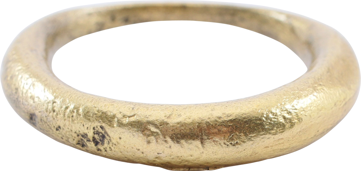 Gilt bronze, circular, 1.5mm at the bottom to 4.6mm at the top. These rings were worn in the hair, particularly around the ears. They are also thought to have been worn as finger rings. This one is ring size 8 ¼. Gilt bronze with the 24karat gold surface restored. Gift boxed with certificate of authenticity.