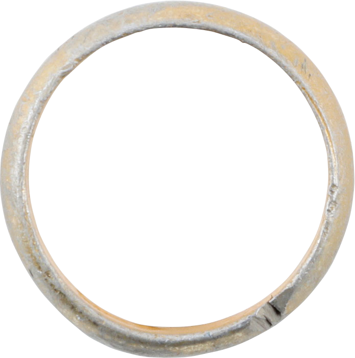 Found by metal detector around 2000 at Ypres (Belgium) scene of some of the most intense fighting with English and French bringing the German advance to a stalemate. Made of aluminum salvaged from ordnance. Size 10 with rounded broad 5.3mm. Light gray surface oxidation.