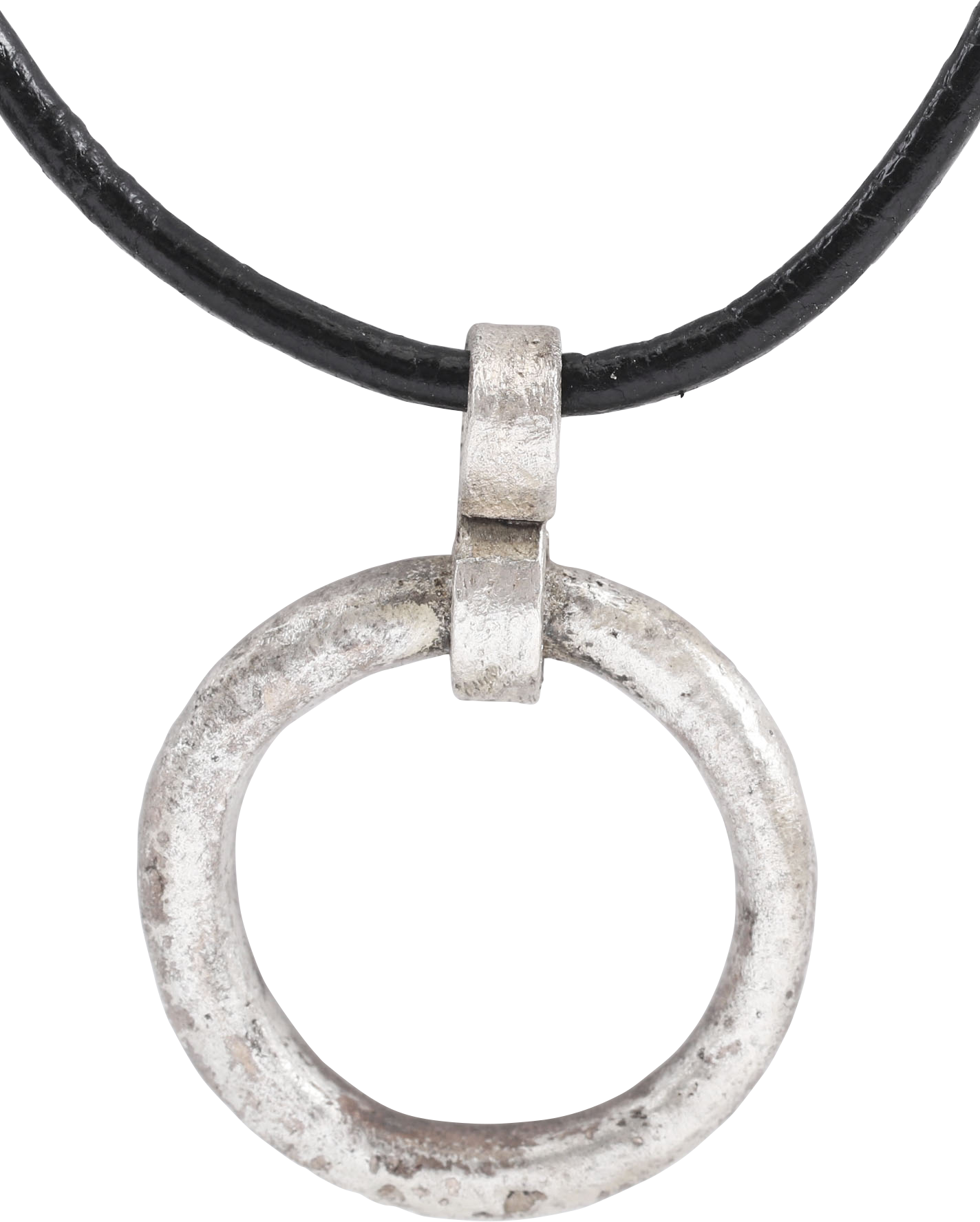 Before the Roman invasion of the British Isles, rings of bronze, silver, and gold were used as a means of exchange, particularly in Ireland. Most exchanges of goods and property were conducted by barter based on shrewd evaluations in each specific situation. Some, including bride prices, later to be called dowries, needed to be more accurately quantified. These rings fulfilled that need as well as providing a palpable demonstration of value. They were worn, sewn to men’s leather jerkins as displays of prosperity. Further, when worn in sufficient numbers, they provided substantial protection from an edged weapon attack. So very like armor in the Middle Ages, they advertised that the wearer was successful economically which translated both by implication and demonstration that he was a formidable objective, best left in favor of something more easily overcome. Surface textured from burial. Professionally refurbished and silvered. On an 18” modern sterling silver neck chain for everyday wear. Jewelry gift boxed with a certificate of authenticity. Proud example, under 1” (0.92”) diameter.