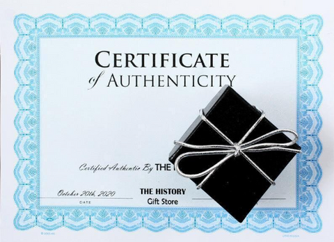 All items purchased from The History Gift Store are accompanied by a signed and dated Certificate of Authenticity with the name of the item and its unique item number for future reference.