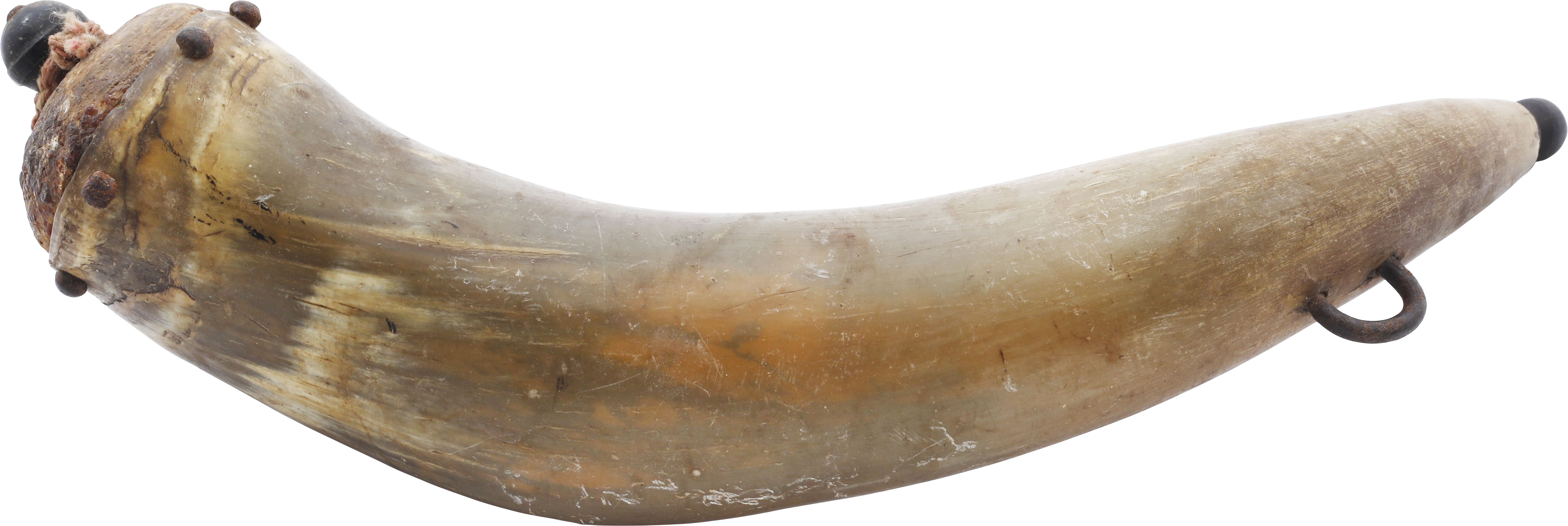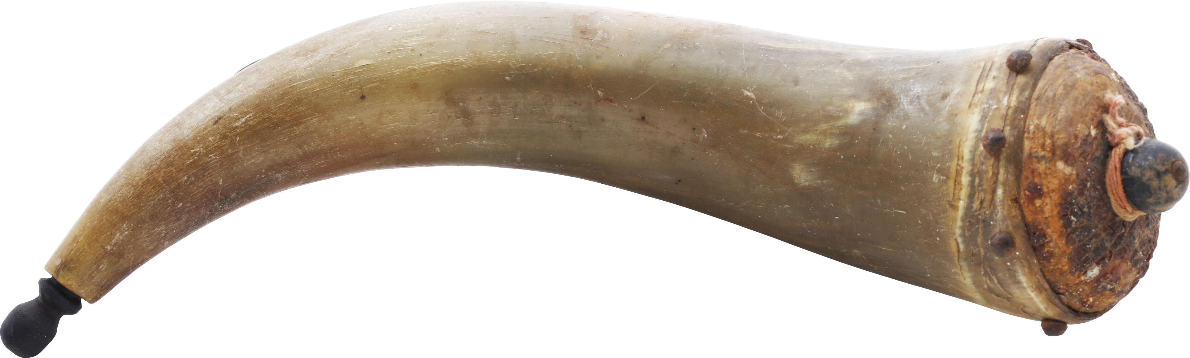 REVOLUTIONARY WAR RIFLE HORN, C.1770