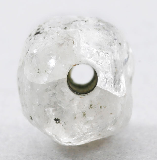 Fine example of rock crystal selected for its inclusions and cleavage. ½” (0.48”) length of faceted barrel form. Drilled from both ends.